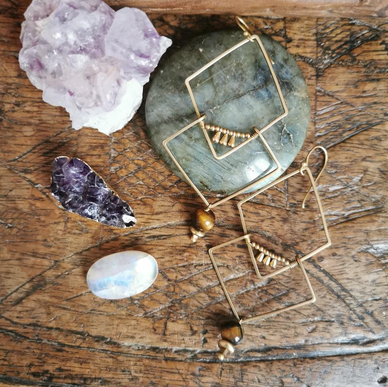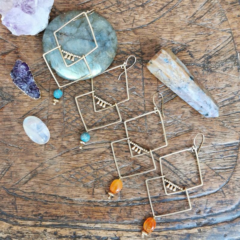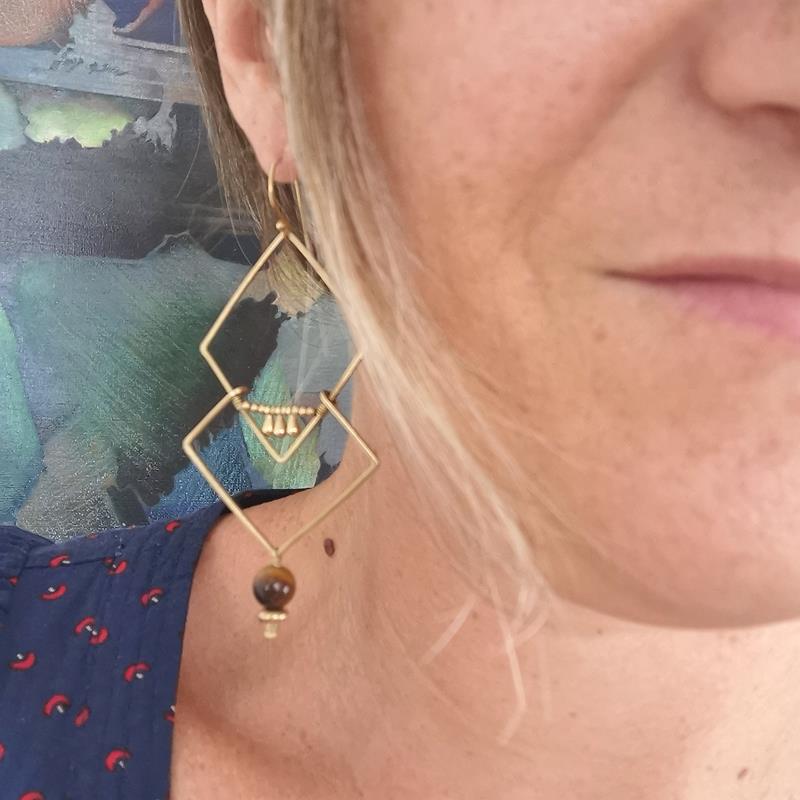 En raison de leur conception artisanale chaque paire de boucles d’oreilles est unique et peut donc très légèrement varier des photos d’origine et d’une  paire à l’autre . Les pierres étant naturelles et uniques, de légères différences de couleurs et de formes peuvent aussi changer l’apparence du bijou.
