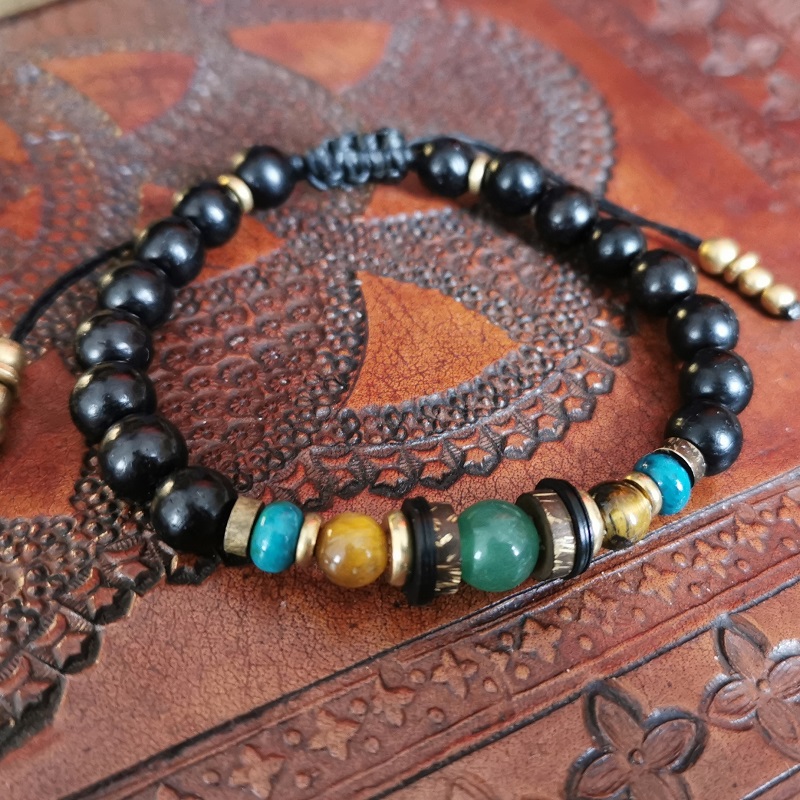 Bracelet homme mala soul noir, aventurine, oeil de tigre et azurite