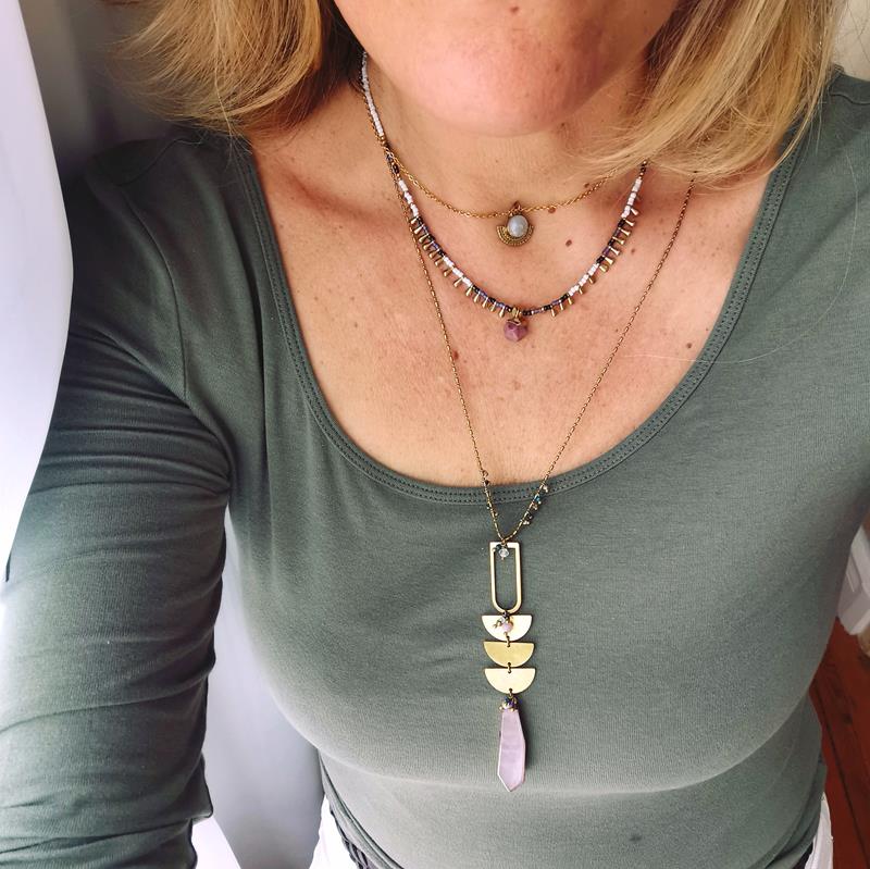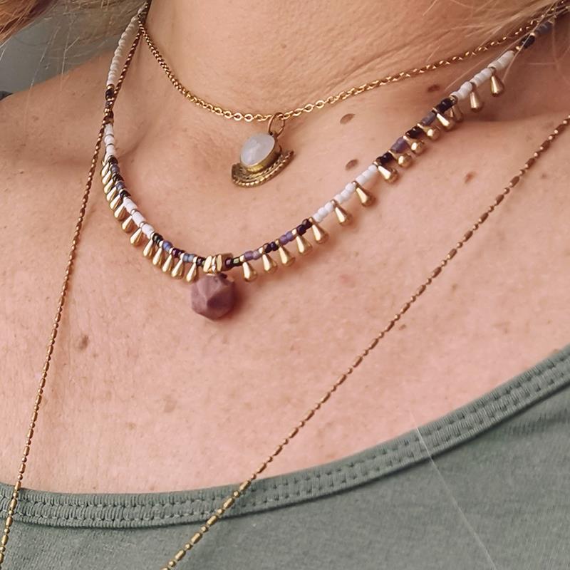 En raison de leur conception artisanale chaque collier est unique et peut donc très légèrement varier des photos d’origine et d’un collier à l’autre . Les pierres étant naturelles et uniques, de légères différences de couleurs et de formes peuvent aussi changer l’apparence du bijou.