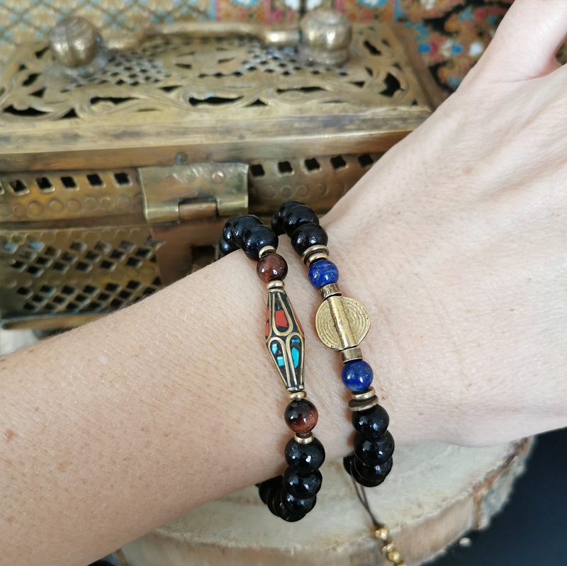 En raison de leur conception artisanale chaque bracelet est unique et peut donc très légèrement varier des photos d’origine. Les pierres étant naturelles et uniques, de légères différences de couleurs et de formes peuvent aussi changer l’apparence du bijou.